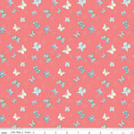 POPPY & POSEY - Butterflies on Coral colored Quilting Cotton Fabric - by Dodi Lee Poulsen - Riley Blake Designs - C10586-CORAL